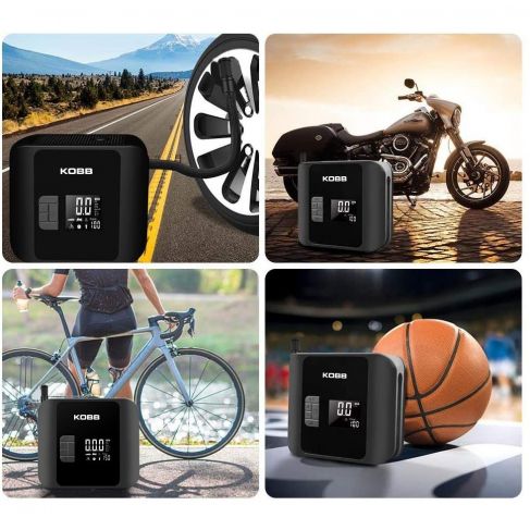 · KOBB KB420 12Volt / Şarjlı Li-ion 150 PSI Taşınabilir Dijital Basınç Göstergeli Led Aydınlatmalı Akıllı Lastik Şişirme Pompası + SOS