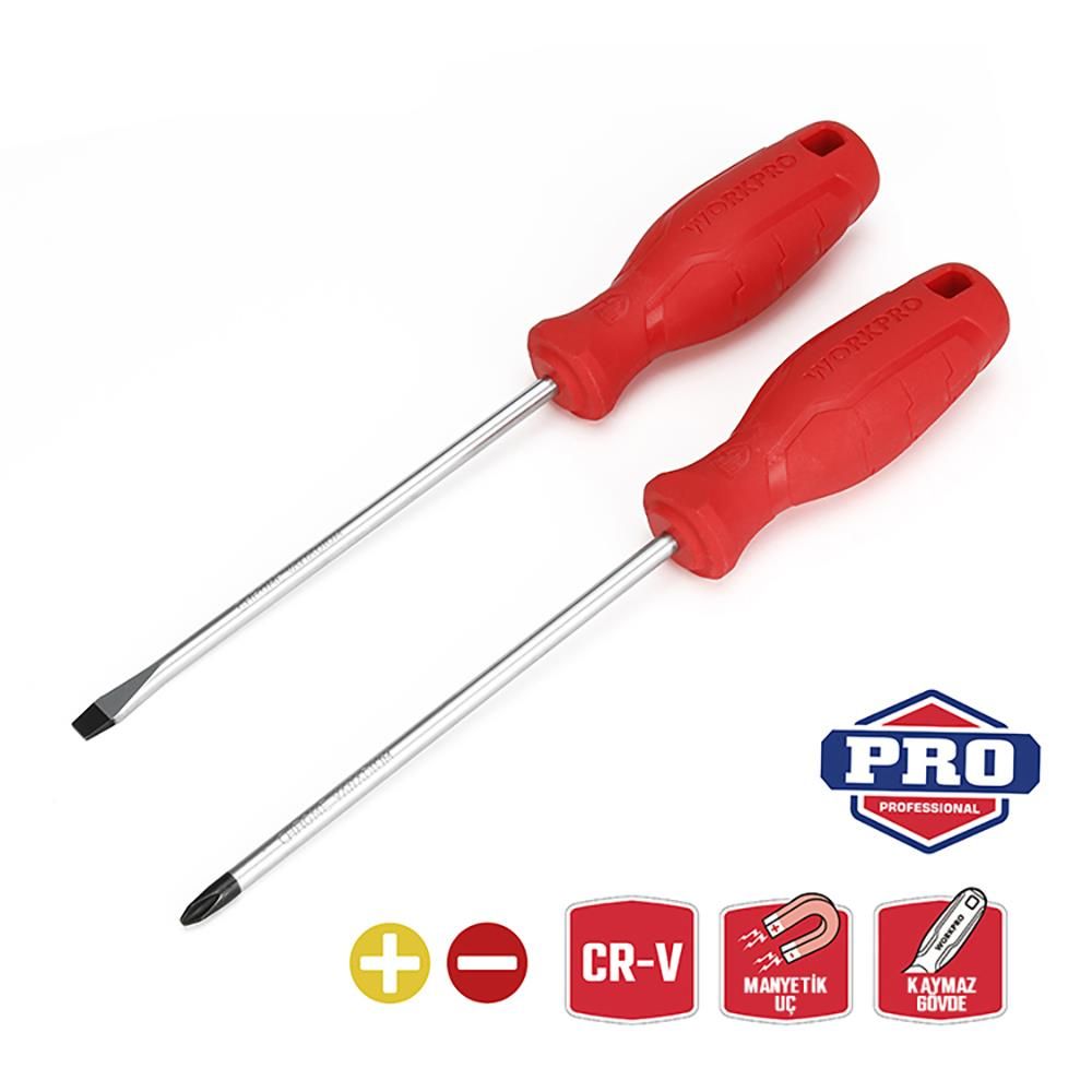 • WORKPRO WP200500 2 Parça Yıldız/Düz CR-V Manyetik Profesyonel Tornavida Seti