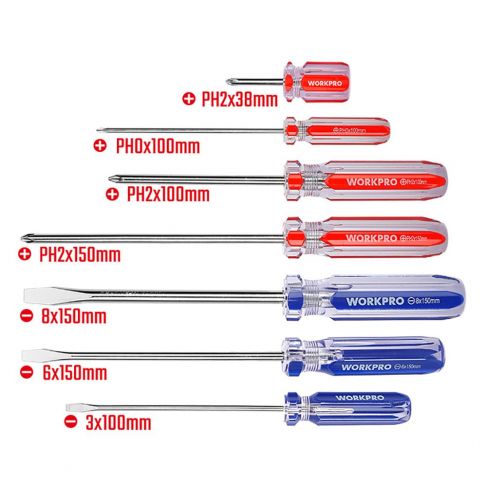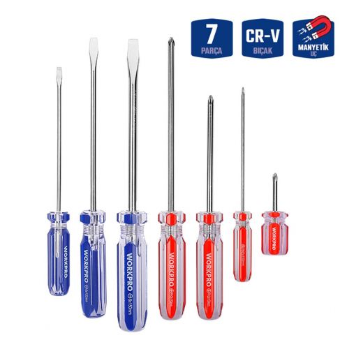 • WORKPRO WP200533 7 Parça CR-V Manyetik Profesyonel Tornavida Seti