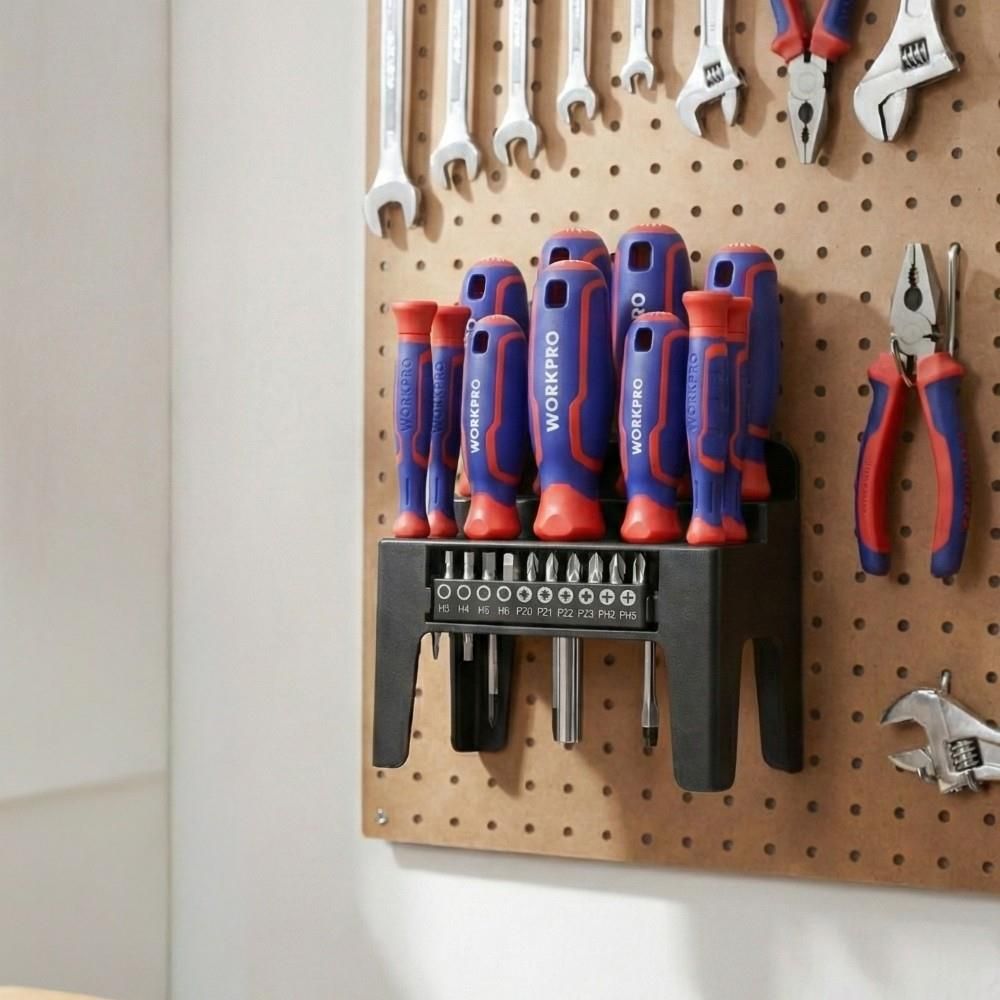 • WORKPRO WP200551 21 Parça CR-V Duvar Askı Aparatlı Profesyonel Manyetik Tornavida Seti