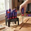 • Geliştirilmiş dayanıklılık, paslanma direnci ve korozyon önleyici özellik için ısıl işlem görmüş CR-V çelikten yapılmış 21 Parça duvar askı aparatlı tornavida seti.
