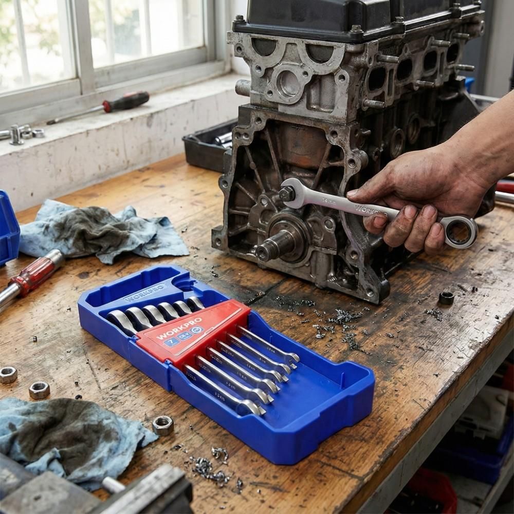 • WORKPRO WP202511 Cr-V 7 Parça Cırcırlı Profesyonel Kombine Anahtar Takımı