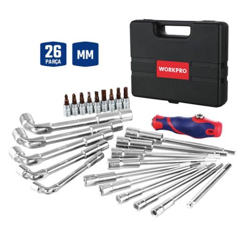 • WORKPRO WP204003 26 Parça Cr-V Profesyonel Motosiklet Tamir Alet Seti