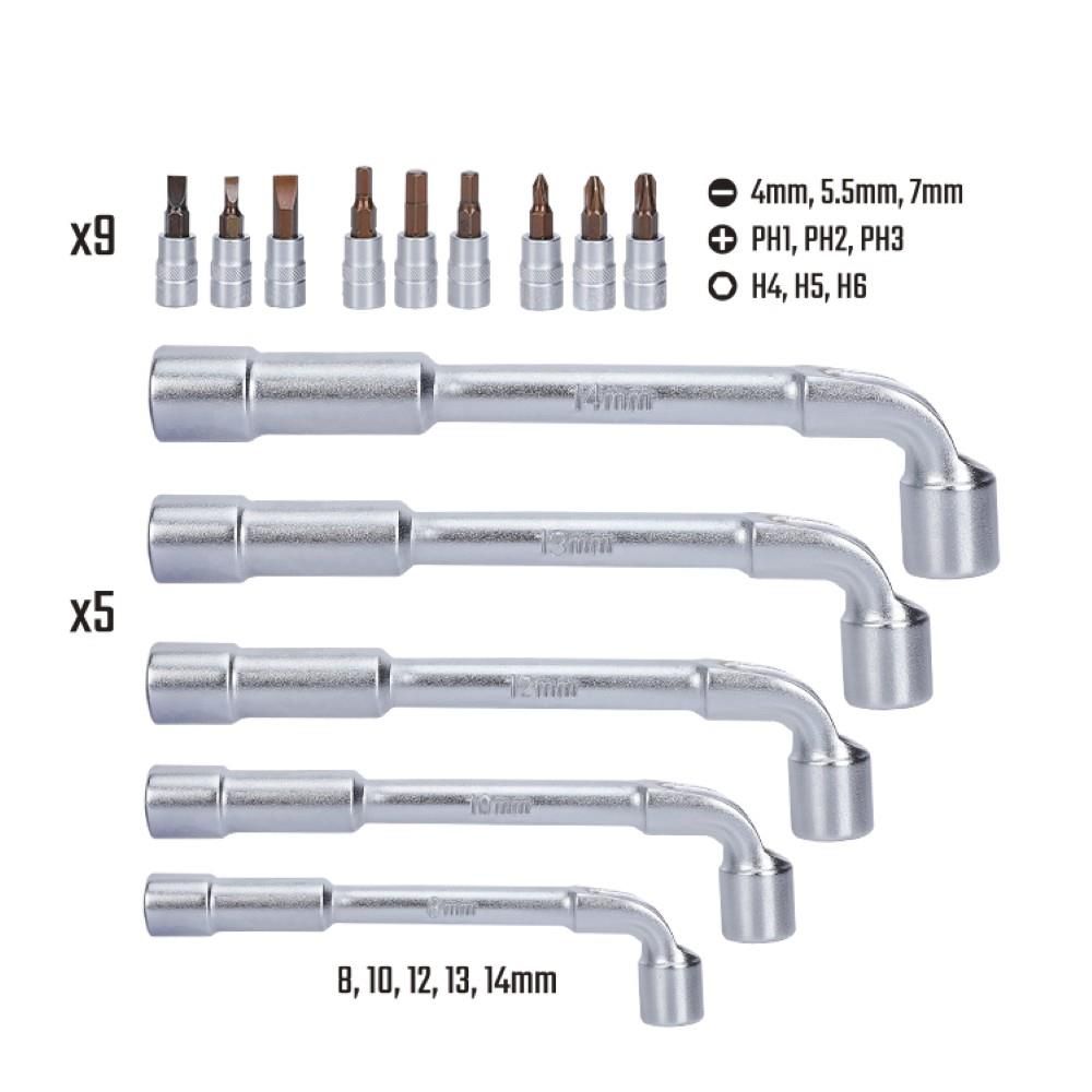 • Profesyonel işlerde özel olarak geliştirilmiş dayanıklılık, paslanma direnci ve korozyon önleyici özellik için ısıl işlem görmüş CR-V çelikten üretilmiş 26 Parçalı metrik uzun şase 1/4'’ lokma anahtarları + 1/4'’ Bits vidalama seti + L tipi lokma anahtarları ile profesyonel kullanım imkânı sağlar.