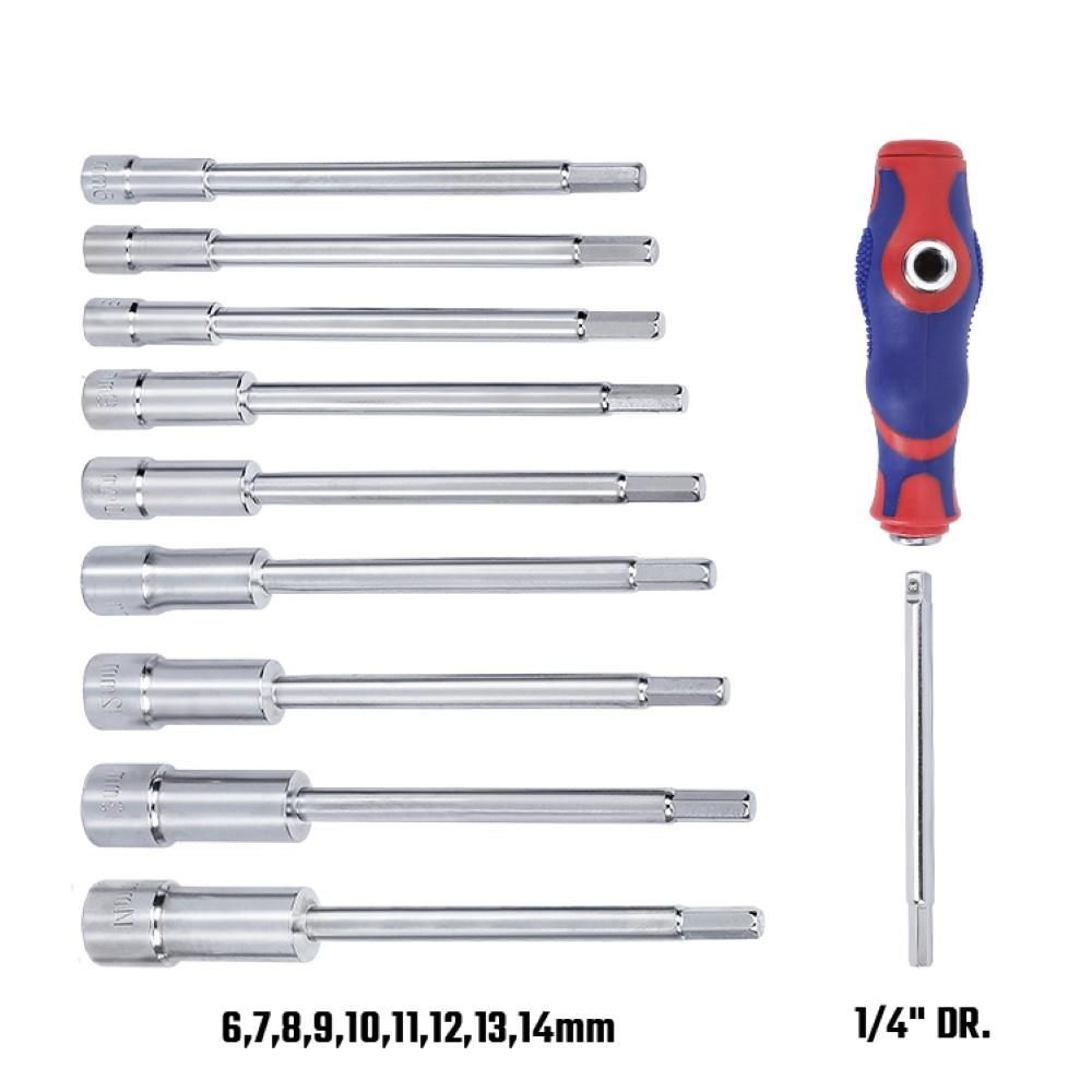 • 9 Adet = 6, 7, 8, 9, 10, 11, 12, 13, 14mm 1/4'’ Uzun Lokma Anahtarları