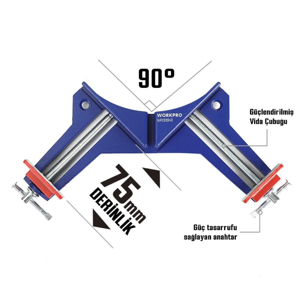 • WORKPRO WP232043 75mm 90° Profesyonel Köşe İşkence